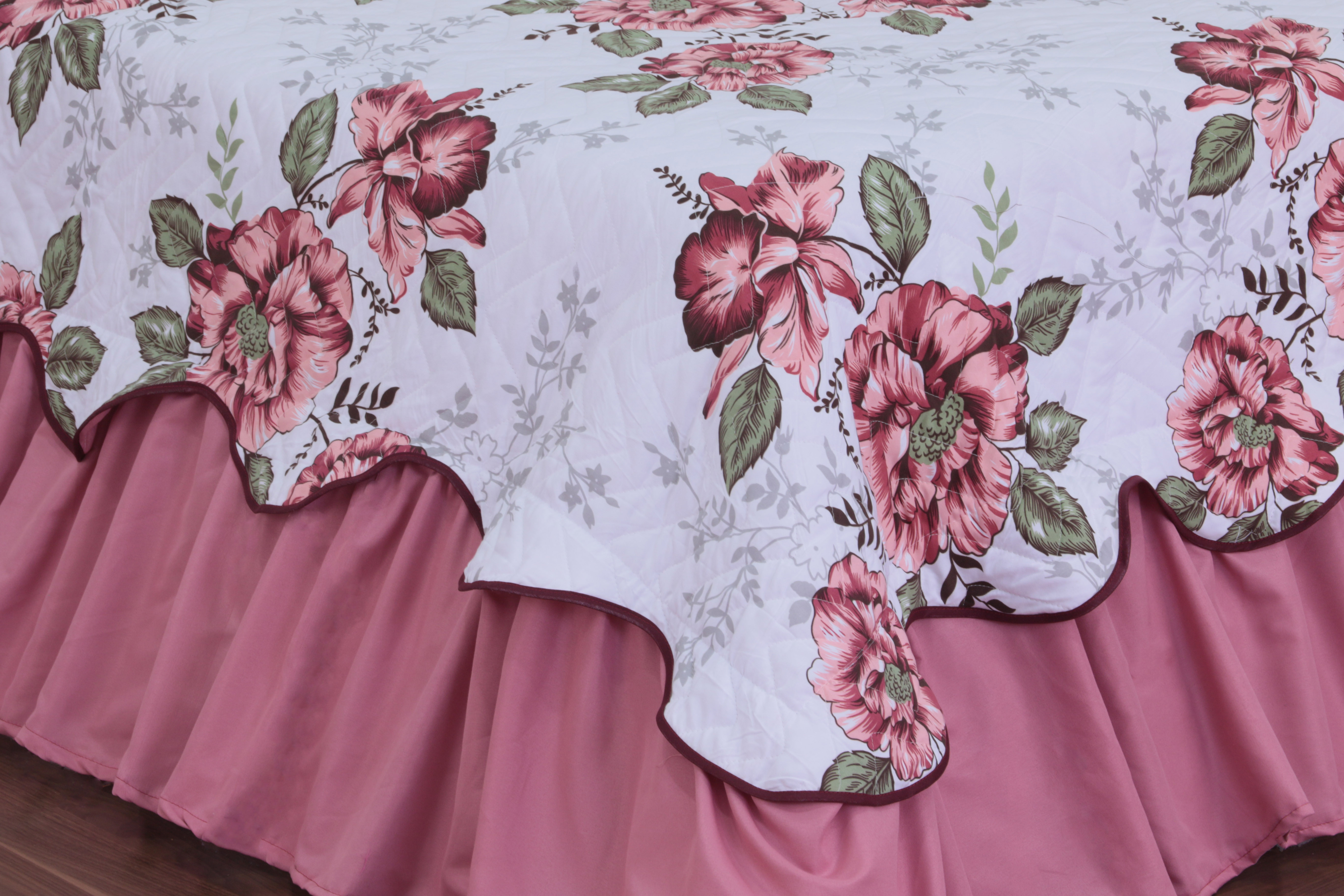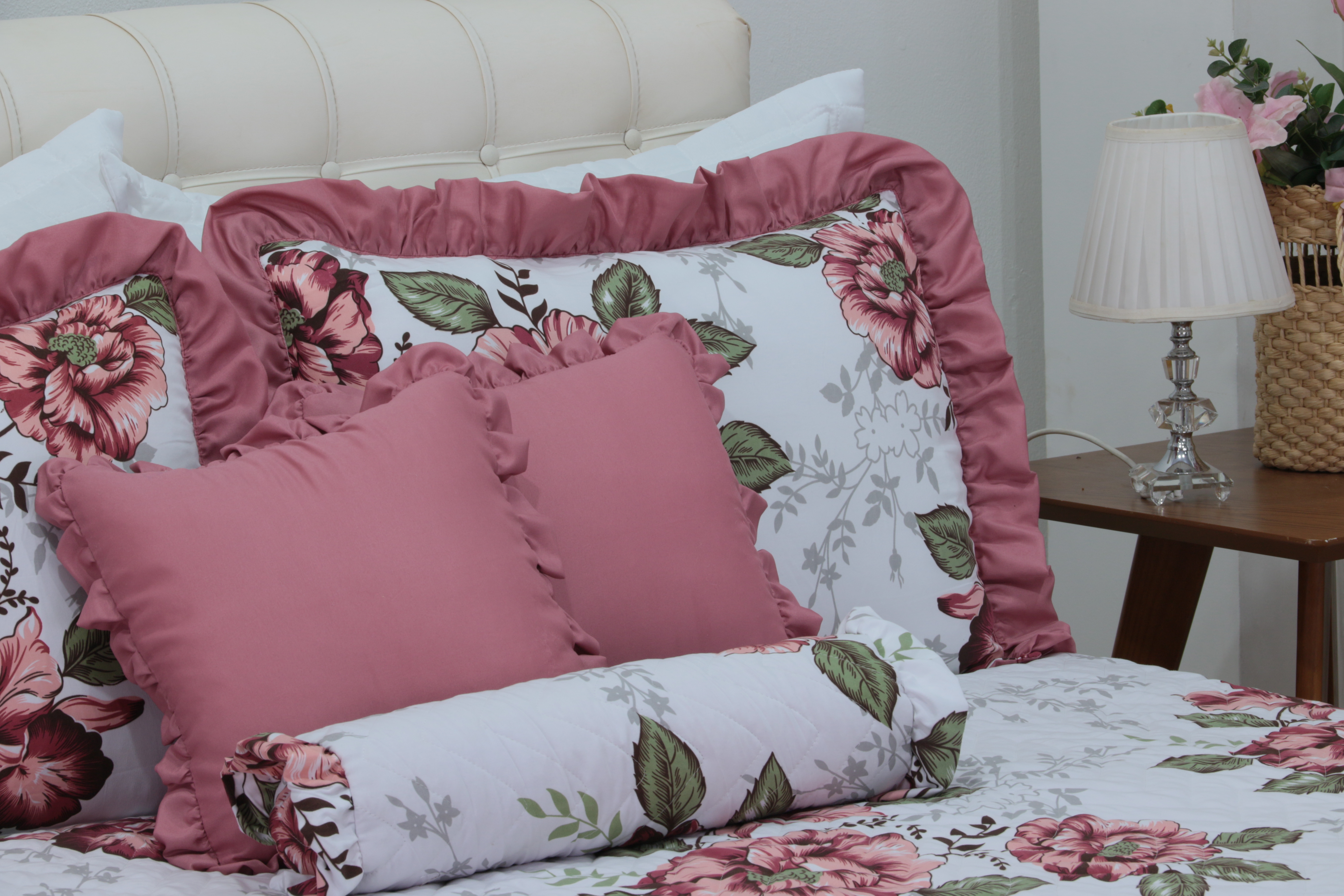 - Informações Específicas: Ótima qualidade e acabamento Indicado para Cama Casal King Tecido Matelassado Com Babado Informações Gerais: Enchimentos de travesseiros e almofadas não acompanham o produto