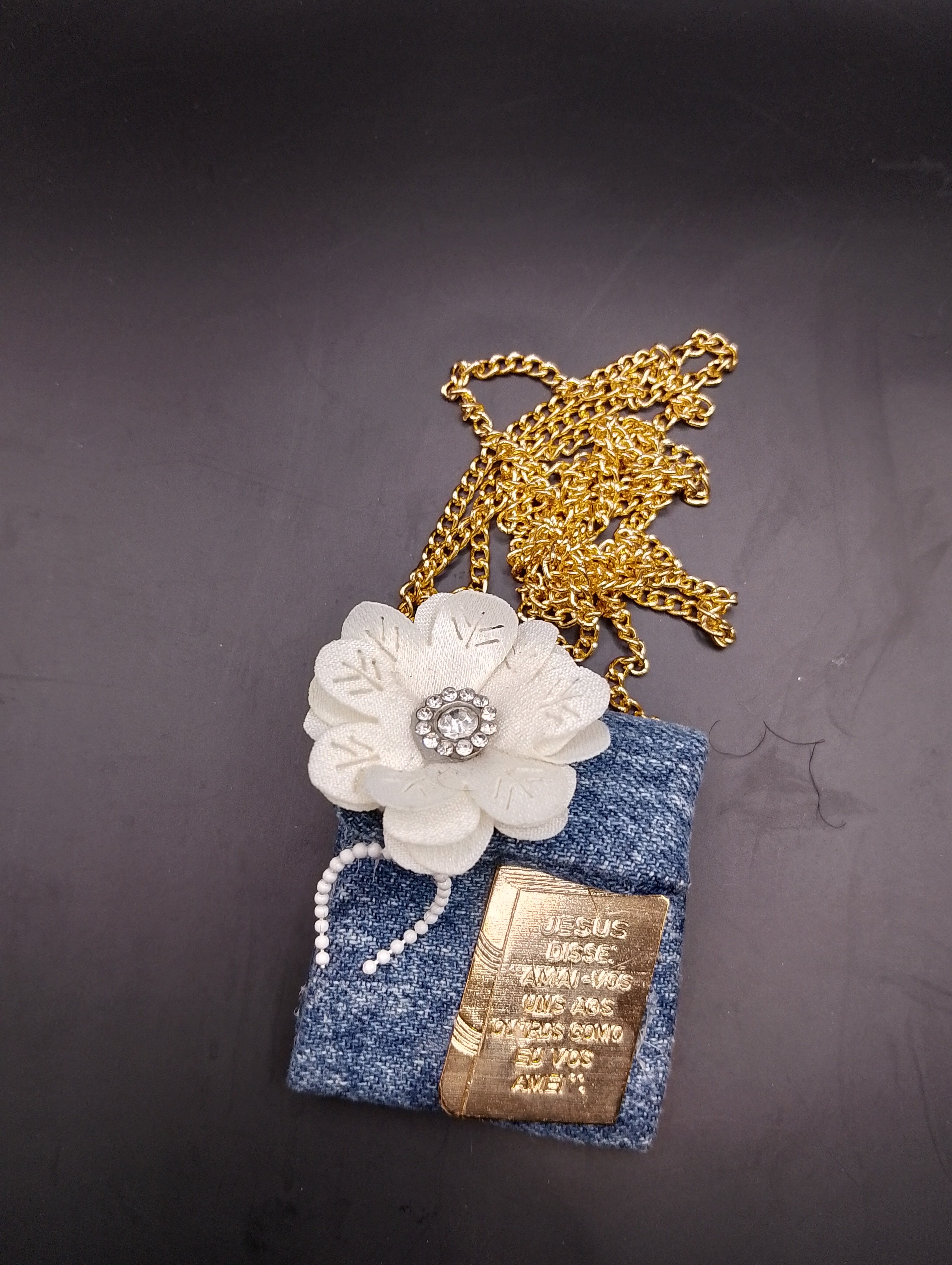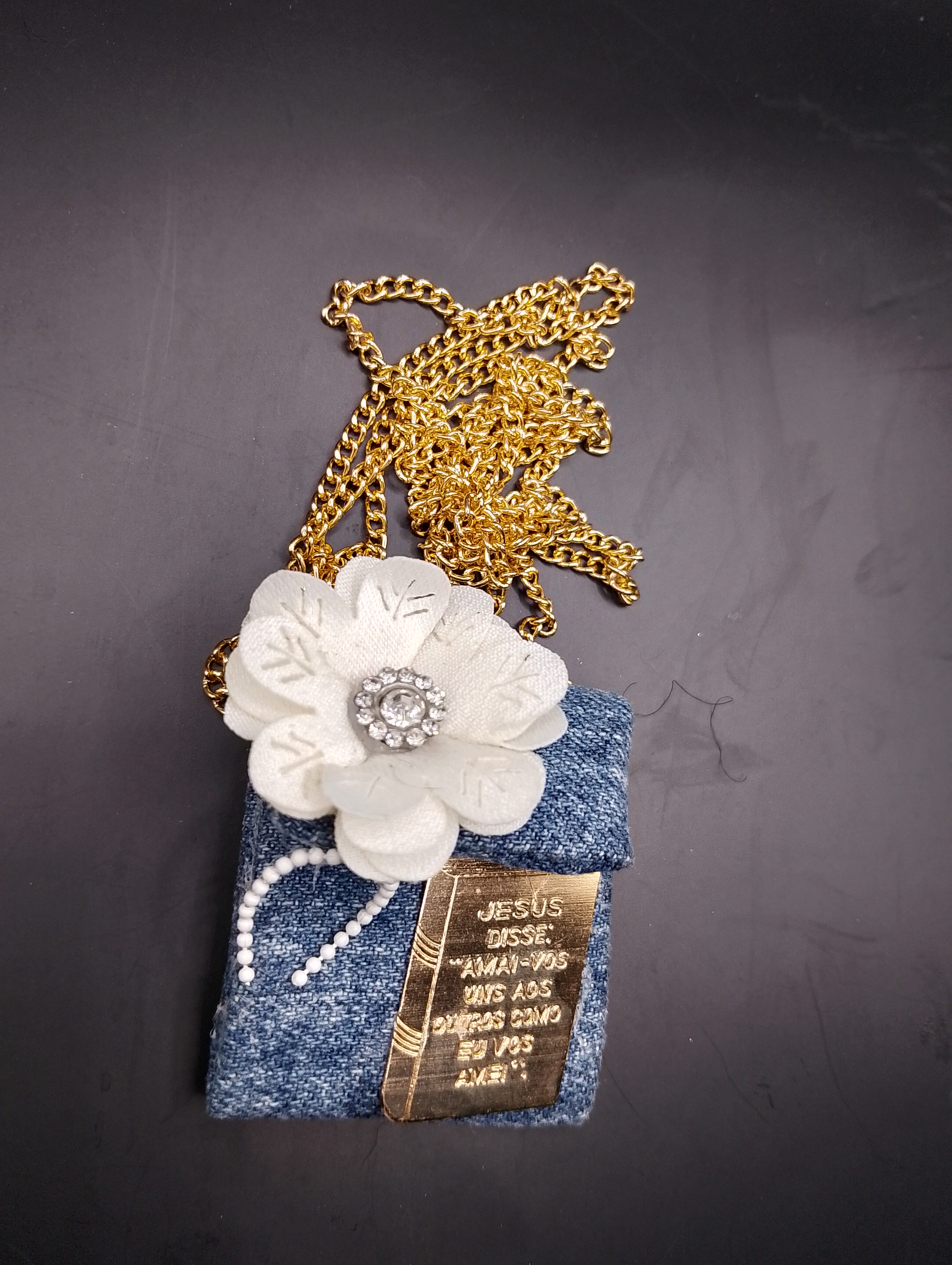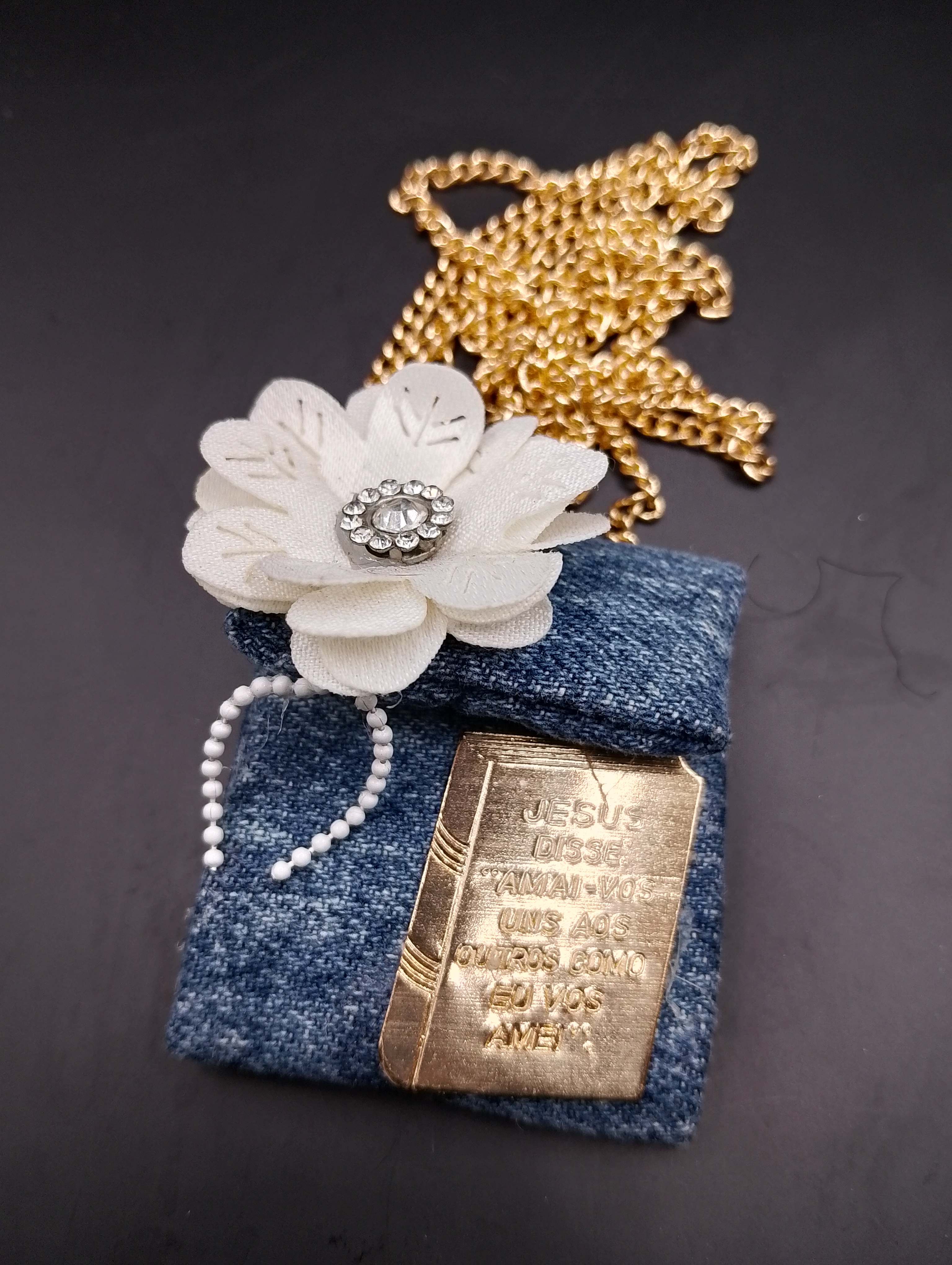 Pátua The Lux - O colar das queridinhas em 2024, Um acessório que veio para brilhar e encantar. Feito a maõs é uma peça delicada um trabalho artesanal com tecidos de cores vibrantes, jeans,brilho, rendas e cetins, metal,missangas um símbolo de glamour e poder, sem igual, um estouro de stilo espiritualidade!