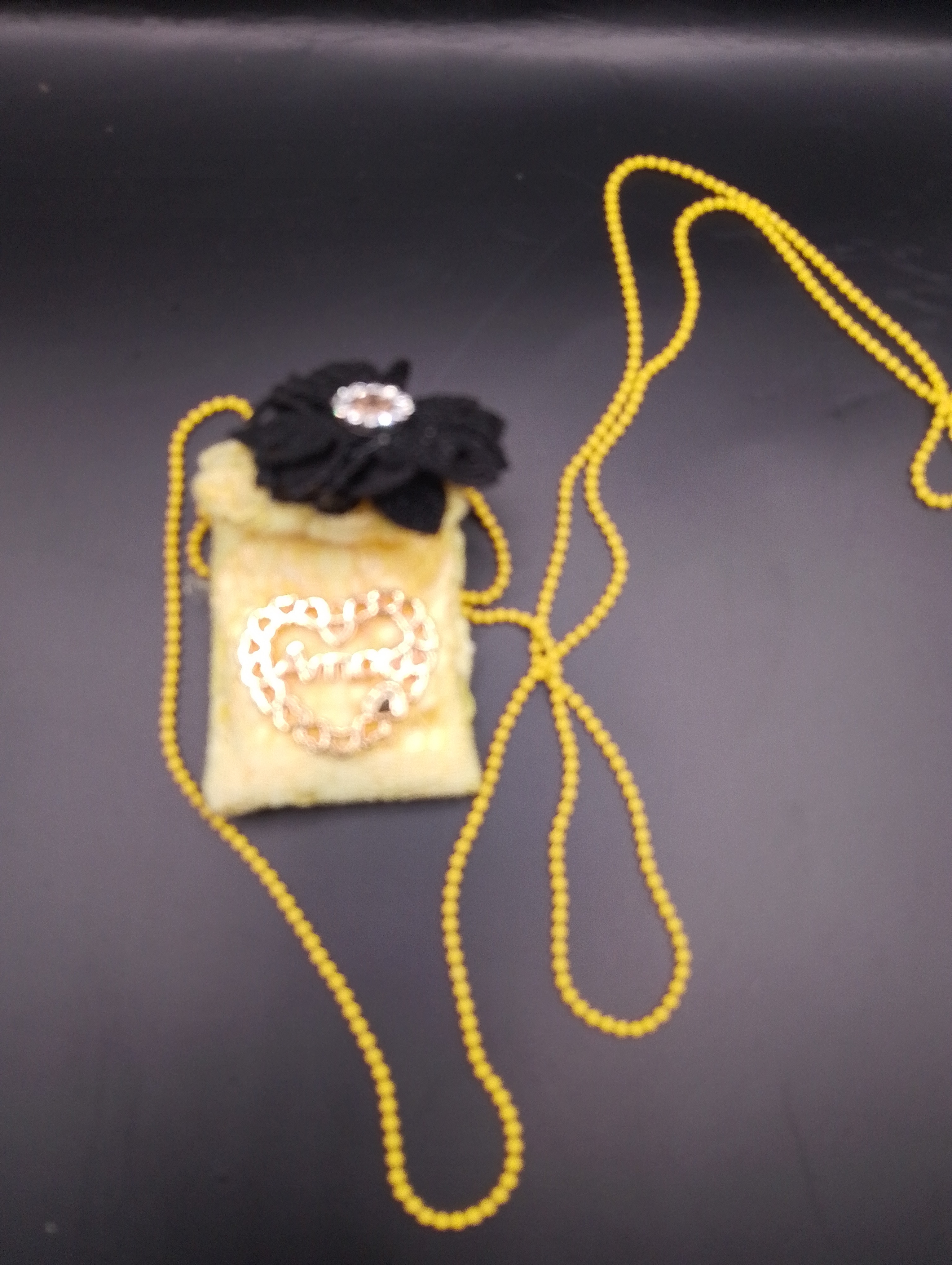 -flor de tecido preta com pedra cristal